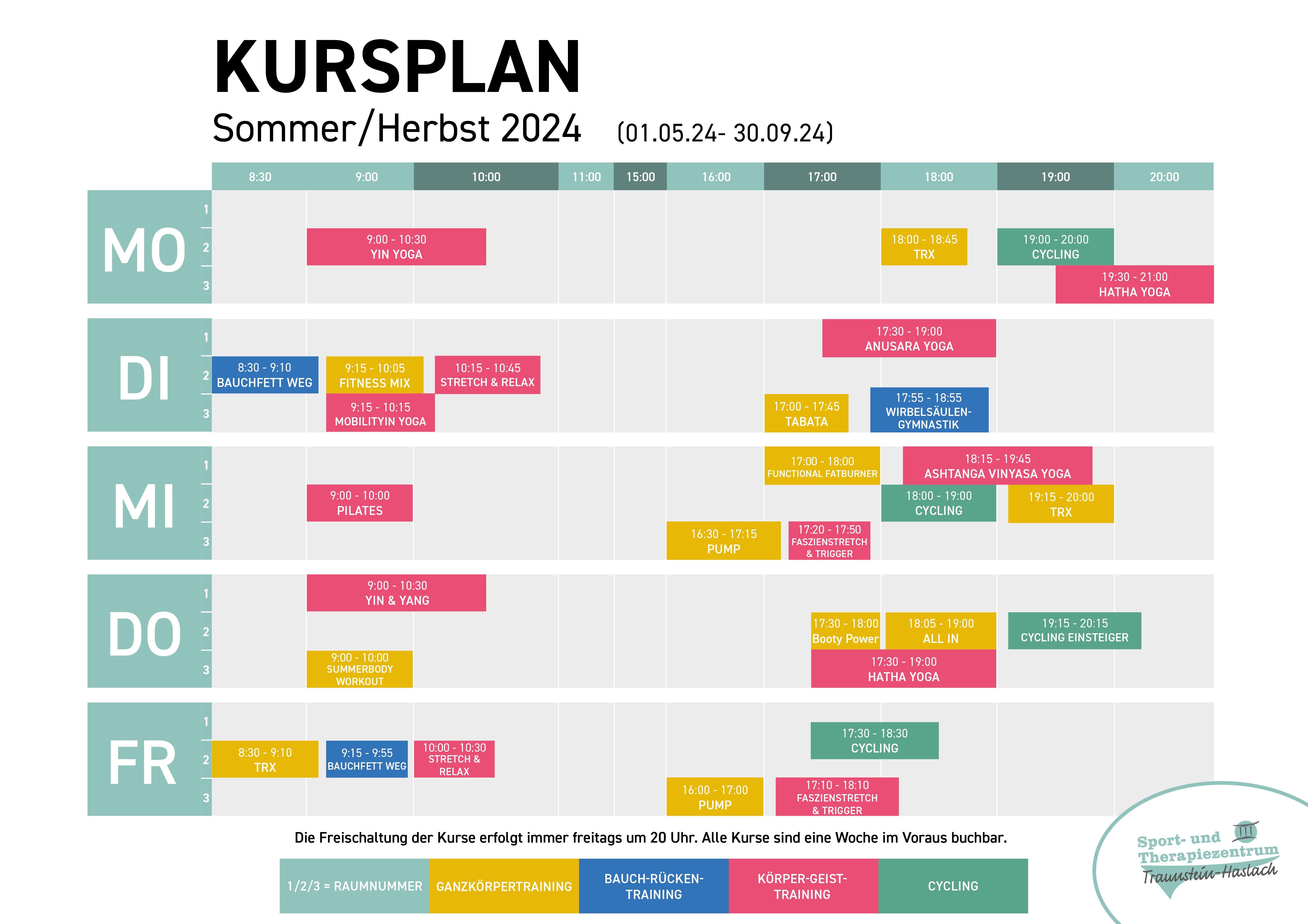 Wir bieten Ihnen die Kurse "Bauchfett Weg!" und Wirbelsäulengymnastik an.